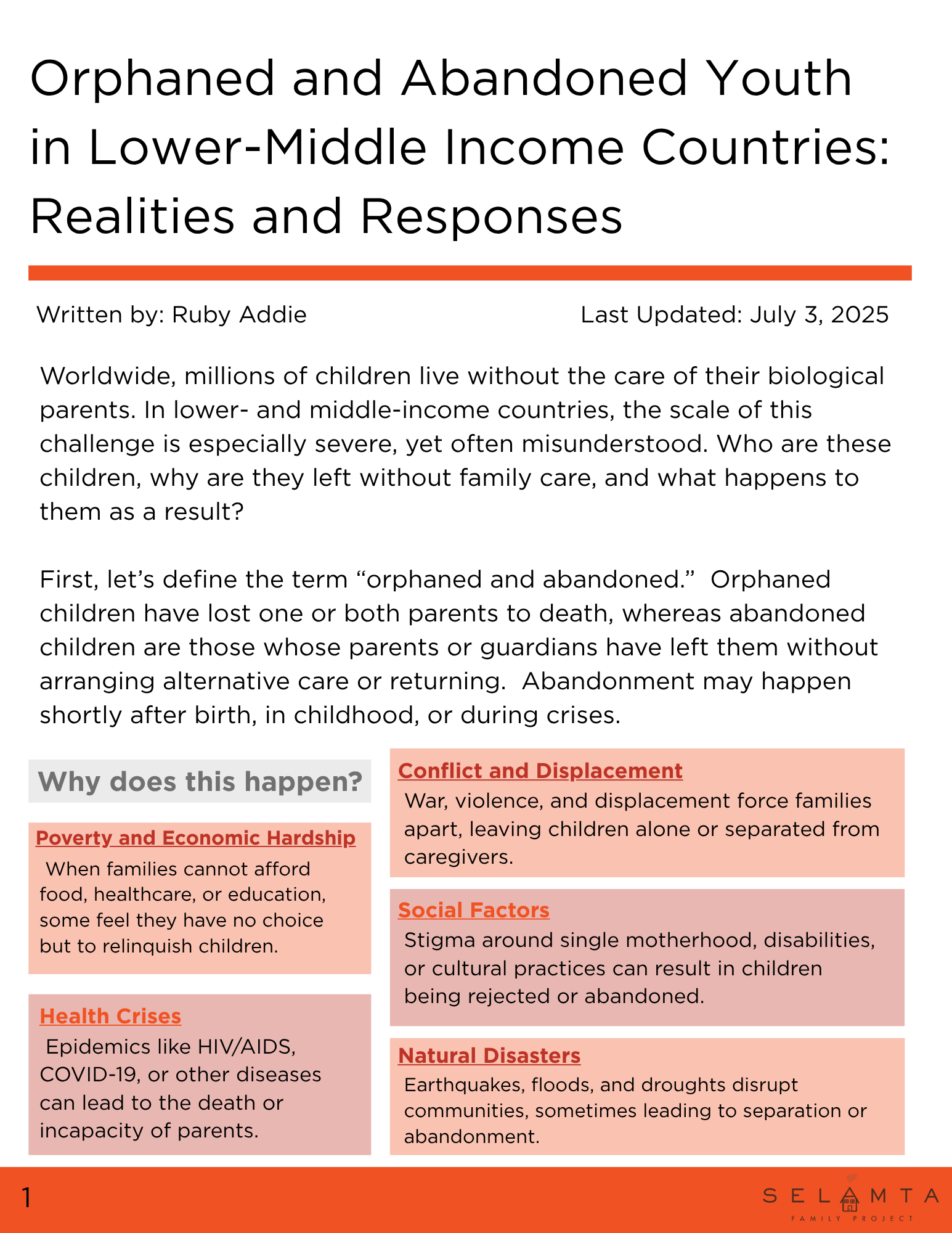 Ruby Addie July 7, 2025 Orphaned and abandoned youth in Lower-Middle income countries: realities and responses Ruby Addie July 7, 2025